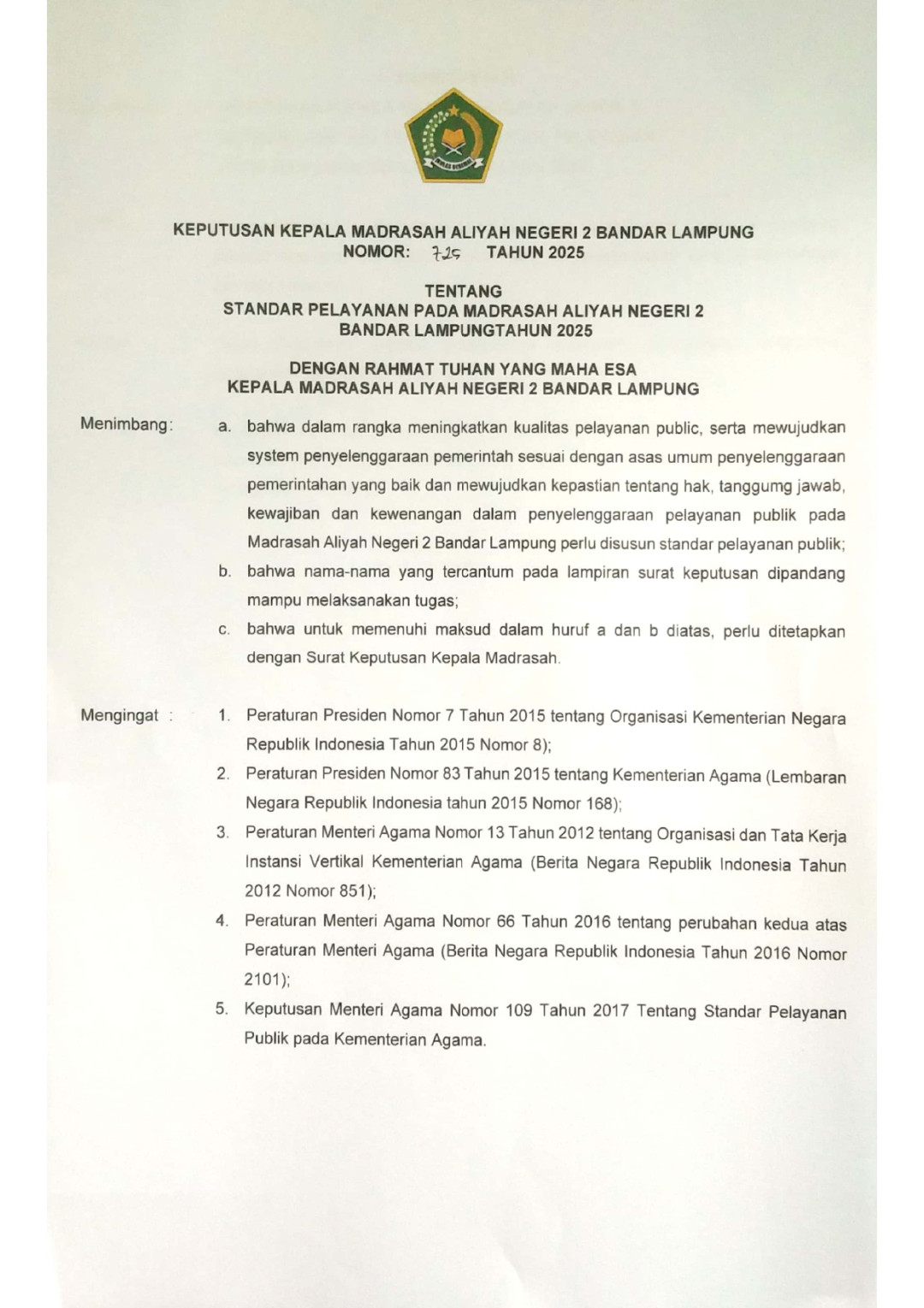 PENERIMAAN PESERTA DIDIK BARU (PPDB) MAN 2 BANDAR LAMPUNG JALUR REGULAR DAN ASRAMA TAHUN 2024/2025