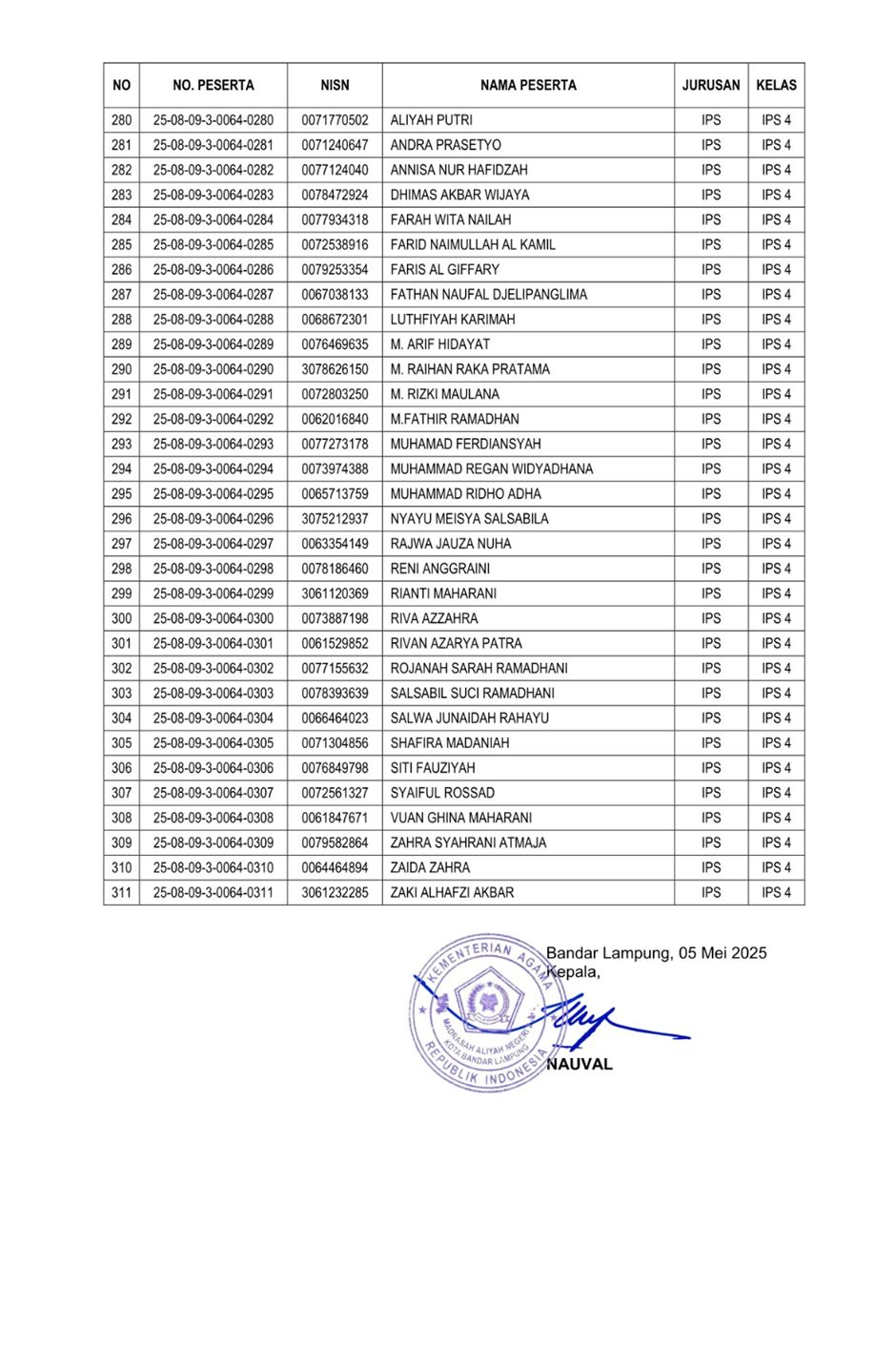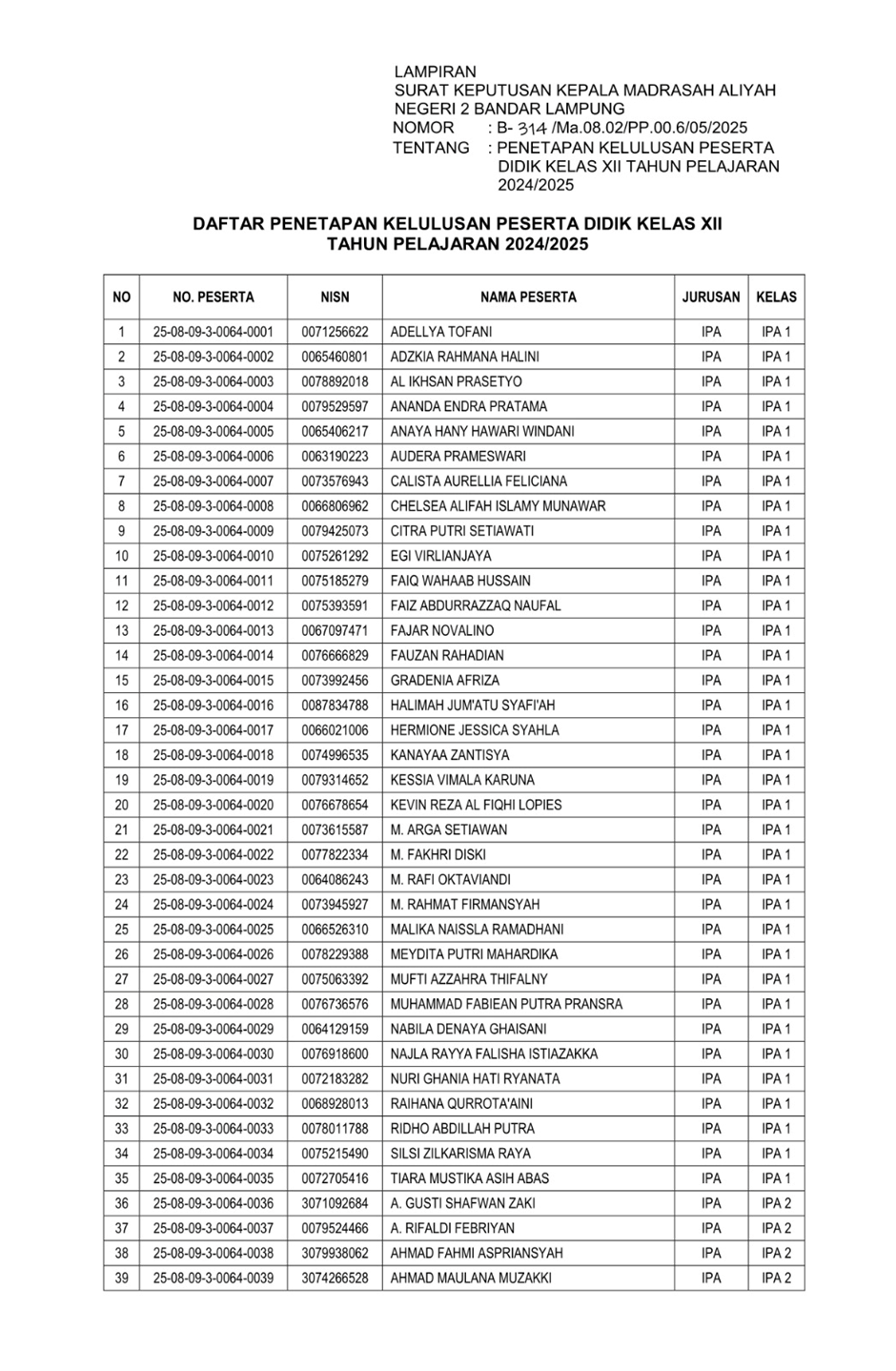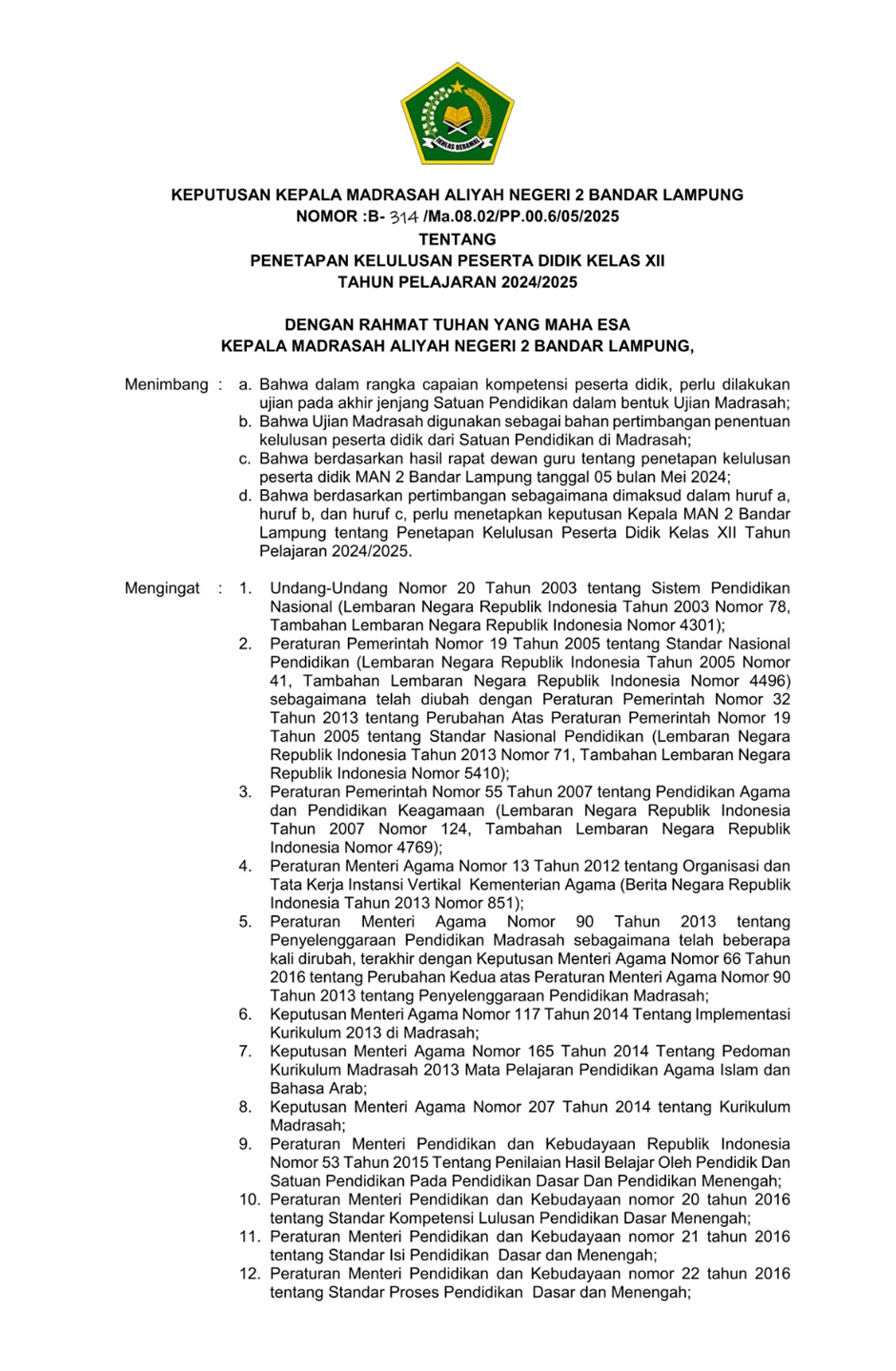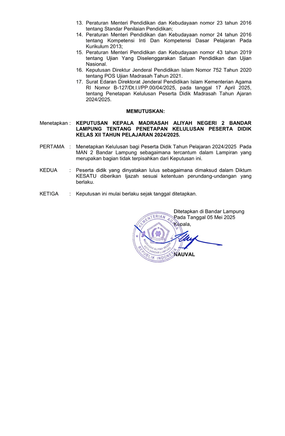 PENETAPAN KELULUSAN SISWA KELAS XII MAN 2 BANDAR LAMPUNG TAHUN PELAJARAN 2024/2025